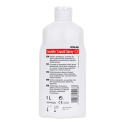 Ecolab Incidin Liquid je dezinfekčný alkoholový prípravok na rýchlu dezinfekciu zdravotníckych nástrojov a pomôcok. Je možné ho priamo použiť bez riedenia. Má príjemnú vôňu, rýchlo schne a nezanecháva fľaky. Zároveň je tento dezinfekčný prostriedok baktericídny, tuberkulocídny, fungicídny, vírusinaktivačný a vhodný na kovy a umelú hmotu. Avšak neodporúča sa ho používať na plexisklo a lakované drevo.
