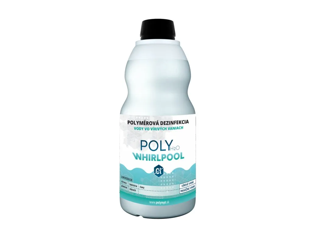 BEZCHLÓROVÁ DEZINFEKCIA VÍRIVIEK H2O WHIRLPOOL je novodobý polymérový tekutý koncentrovaný prípravok na dezinfekciu a hygienické zabezpečenie vody vo všetkých druhoch víriviek. Má silný a dlhodobý účinok proti mikroorganizmom a riasam. H2O WHIRLPOOL je tou najlepšou voľbou moderného dezinfekčného prípravku . Vlastnosti: Ošetrená voda je na pocit príjemná, nie je cítiť po chlóre, nedráždi oči, pokožku a sliznicu. Nepoškodzuje žiadne materiály a nespôsobuje koróziu kovových častí víriviek. Má dlhodobý dezinfekčný účinok v porovnaní s inými úpravami vody a je pH neutrálny. Návod na použitie: Upravte pH vody na úroveň 7,0. Dávku 100 ml / 1m³ (1000 L) aplikujeme priamo do vody každých 7 dní. H2O WHIRLPOOL dávkujte pri zapnutej cirkulácii, čo zabezpečí dokonalé zamiešanie do celého objemu vody. Ošetrenie vykonávajte bez prítomnosti osôb vo vírivke. Kúpať sa môžete po 30 minútach. Pre dlhodobé udržanie kvality vody odporúčame POLY WHIRLPOOL kombinovať s dávkovaním oxidačného prípravku POLY CLEAR podľa návodu a pravidelne kontrolovať hodnotu pH. Čas potrebný pre biocídny účinok je 120 minút.
