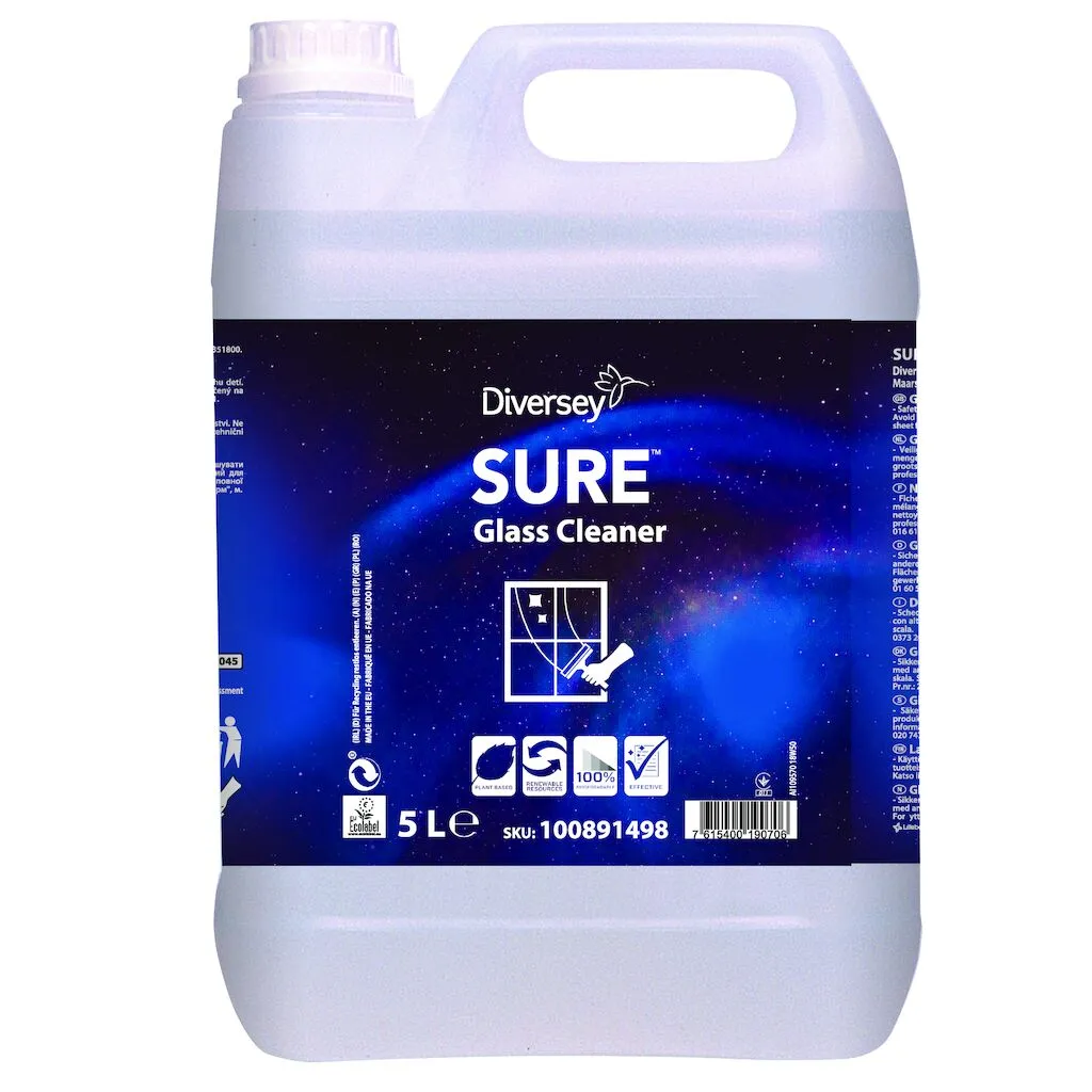 SURE Glass Cleaner je súčasťou unikátneho radu založeneho na rastlinnej báze 100 % biologicky odbúrateľných profesionálnych čistiacich prostriedkov splňujúce potreby pre každodenné čistenie.