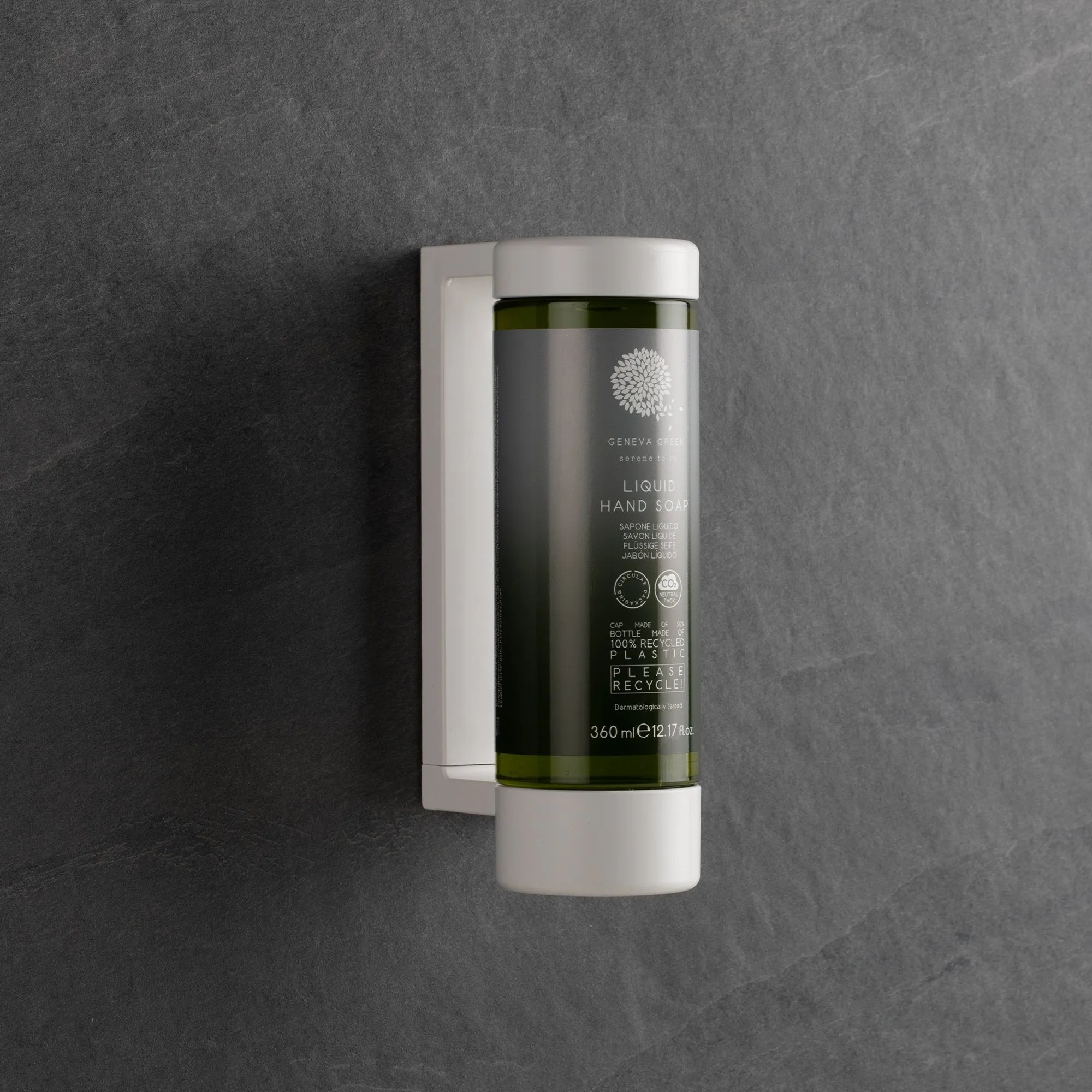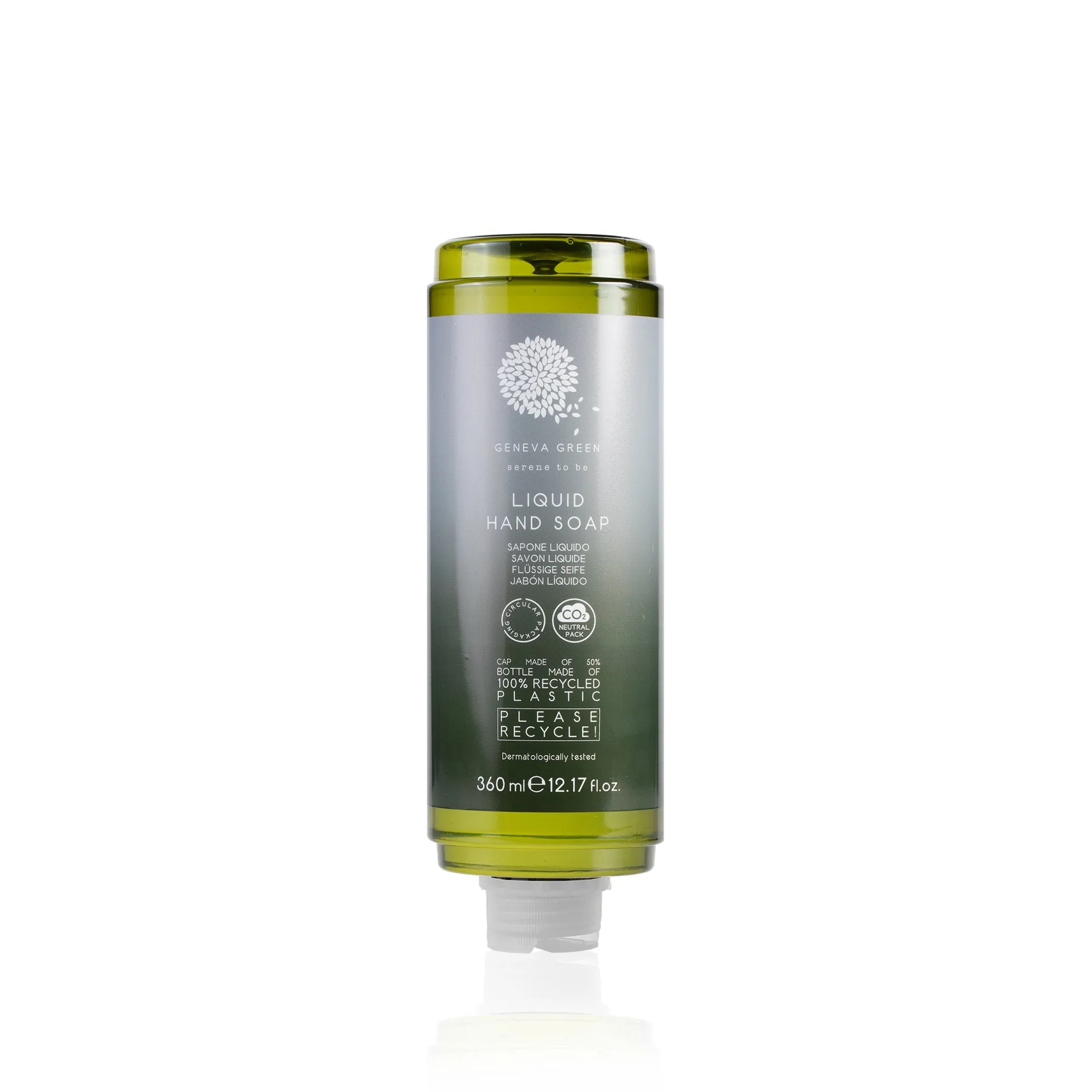 Všetky balenia Geneva Green majú uhlíkovo neutrálna stopa. Kompenzácia emisií pomáha znížiť globálne skleníkové plyny. Geneva Green tekuté mydlo na ruky jemne čistí pokožku, jemne voňavé zloženie je obohatené o extrakt z Aloe Vera. Šetríme 87%* emisií CO2 za kompletnú výrobu plastovej živice použitej v našich fľašiach. Tieto údaje sú k dispozícii vďaka výpočtu LCA na našej post spotrebiteľskej PET živici v porovnaní s panenskou živicou. Celý obal je 100% recyklovateľný, žiadny odpad nejde na skládky. Vyrobené a balené v Taliansku.