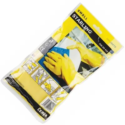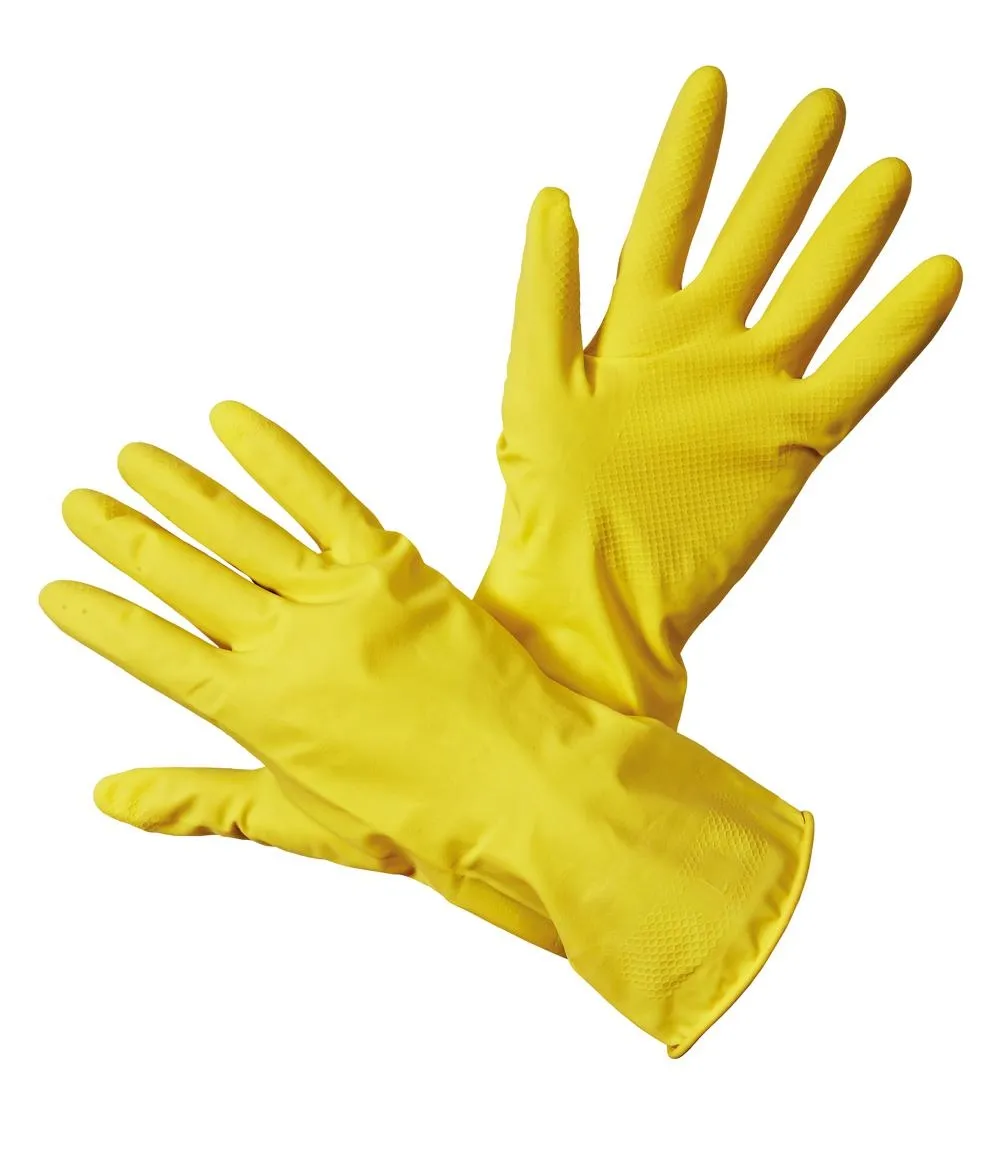 Latexové rukavice pre domácnosť, velúrová úprava vnútorného povrchu, protišmyková štruktúra na dlani a prstoch, farba žltá
