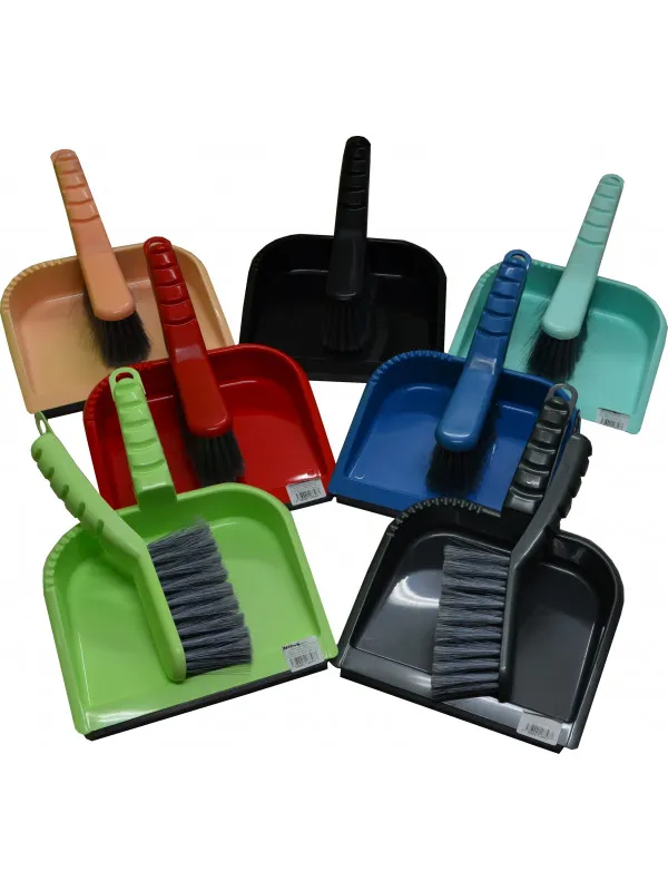 Lopatka s metličkou z hrubšieho plastu, vyrobená z prémiových surovín bez recyklovaného obsahu, má väčšiu zbernú plochu, pri štandardnom používaní sa nerozbije, rôzne farby. Zberná plocha lopatky: šírka 20 cm, hĺbka 19 cm Dĺžka vlasu 5,5 cm, celková dĺžka metličky 28 cm Zloženie: polypropylén, PET, guma.