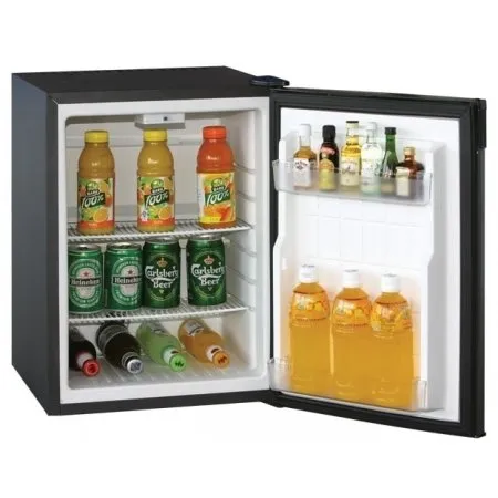 Tichý absorbčný minibar s objemom 40 litrov. objem: 40 l rozmery: 560 x 402 x 455 mm (v/š/h) rozmrazovanie: automatické spotreba: 0,8 kWh/24h hmotnost: 15 kg vybavenie: termostat, LED osvetlenie, 2 rošty, 2 poličky vo dverach farebné prevedenie: antracit