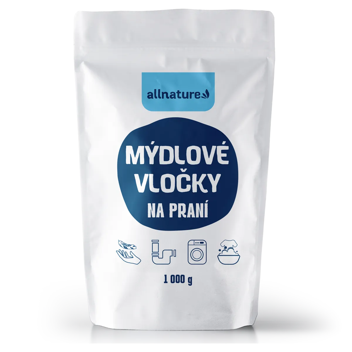 Skvelá ekologická alternatíva klasických pracích prostriedkov. Prírodné mydlá sa v odpadových vodách pôsobením baktérií, za prítomnosti kyslíka rozložia za relatívne krátku dobu bezo zvyšku na vodu, oxid uhličitý a soľ. Tento stav sa nazýva úplnou biologickou rozložiteľnosťou. Použitie: Mydlové vločky sú vhodné pre citlivú pokožku a vďaka tomu ho je možné použiť aj pri praní kojeneckého oblečenia. Mydlové vločky sú účinné pri vyšších aj nižších teplotách. Vhodné pre biele aj farebné oblečenie. Dávkovanie: Pranie v práčke: Mydlové vločky nasypte priamo do bubna práčky. Odporúčaná minimálna teplota prania 40-90 °C. Na 4kg bielizne nasypte 1-2 polievkové lyžice (15-30g) podľa znečistenia a tvrdosti vody. Ručné pranie: Pri ručnom praní nasypte cca 1 polievkovú lyžicu do 10 l teplej vody. Zloženie: Mydlo > 30%, fosfáty <5% Obsah: 1000 g