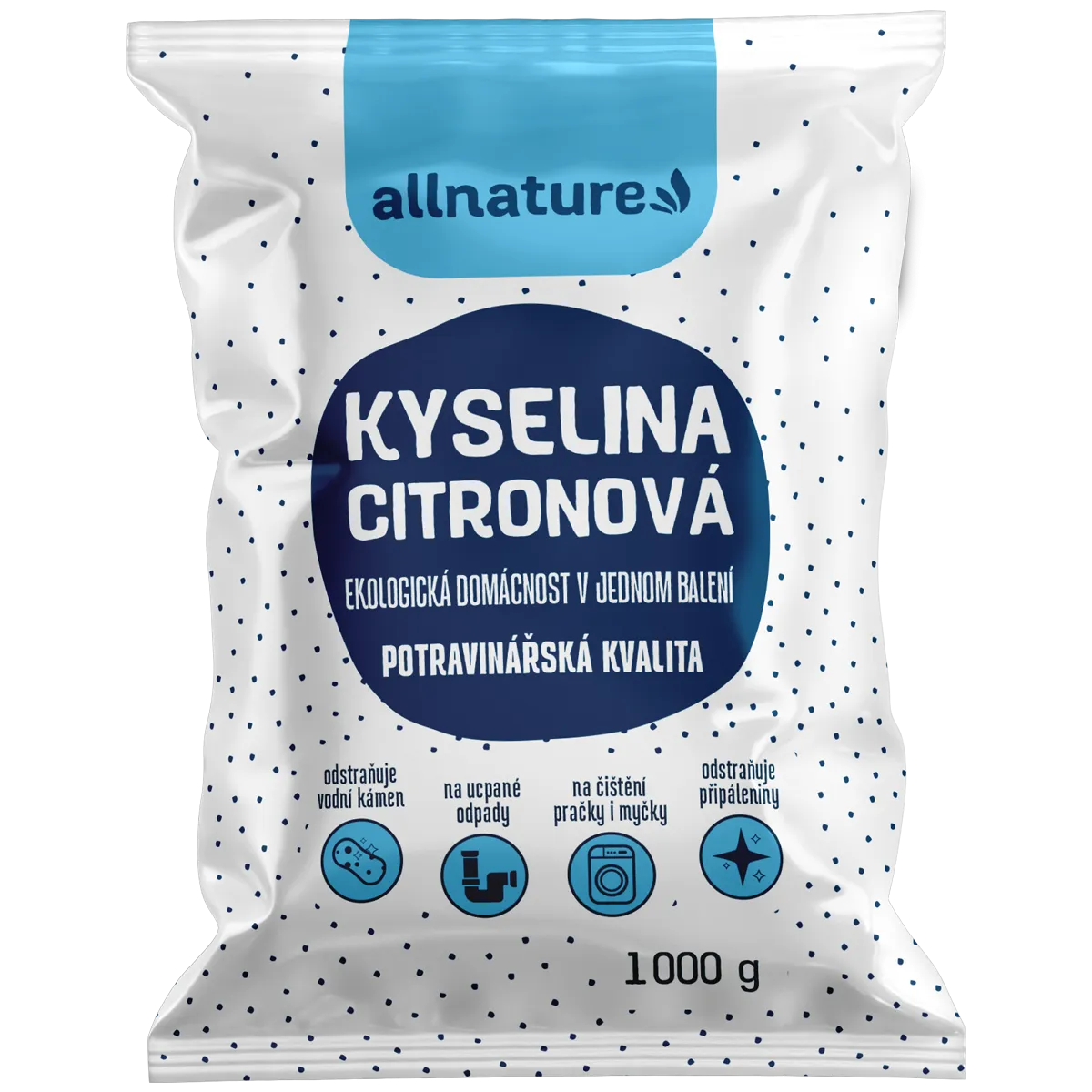 Kyselina citrónová je všestranným ekologickým pomocníkom pre každú domácnosť. Bezpečne odstraňuje nečistoty a zápach. Čistí odpad, obkladačky a spotrebiče. Použitie: Upratovanie: 2 čajové lyžičky na 500ml vody. Čistenie práčky: 250g kyseliny citrónovej nasypte do prázdneho bubna, zapnite cyklus rania na 50-60 °C. Oblečenie: Pre odstránenie škvŕn bielizeň namáčajte 1 hodinu v roztoku 10 g kyseliny citrónovej na 1 l vody. Čistenie rýchlo varnej kanvice: Kanvicu naplňte vodou do ponorenia zahrievacieho telesa a pridajte 1 lyžicu kyseliny citrónovej, nechajte zovrieť. Čistenie umývačky riadu: 250 g kyseliny citrónovej nasypte do prázdnej umývačky a spustite. Zloženie: Kyselina citrónová E330 100% Obsah: 1000 g