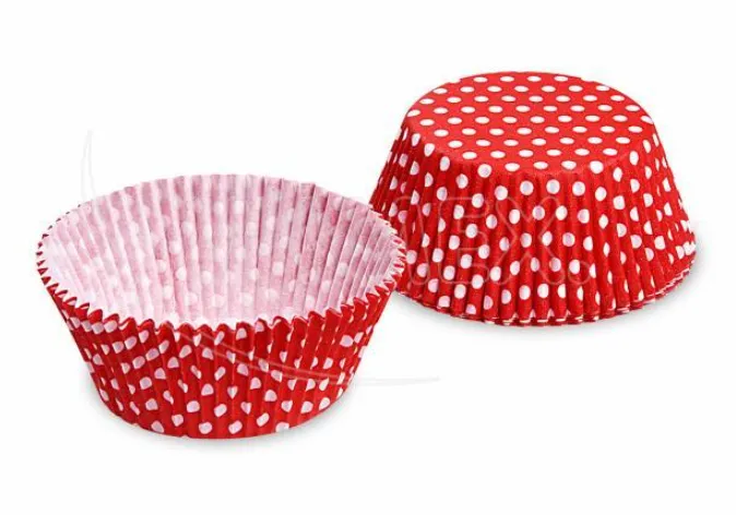Cukrárenské košíčky, červené s bodkami, priemer 50 x 30 mm (40 ks)
