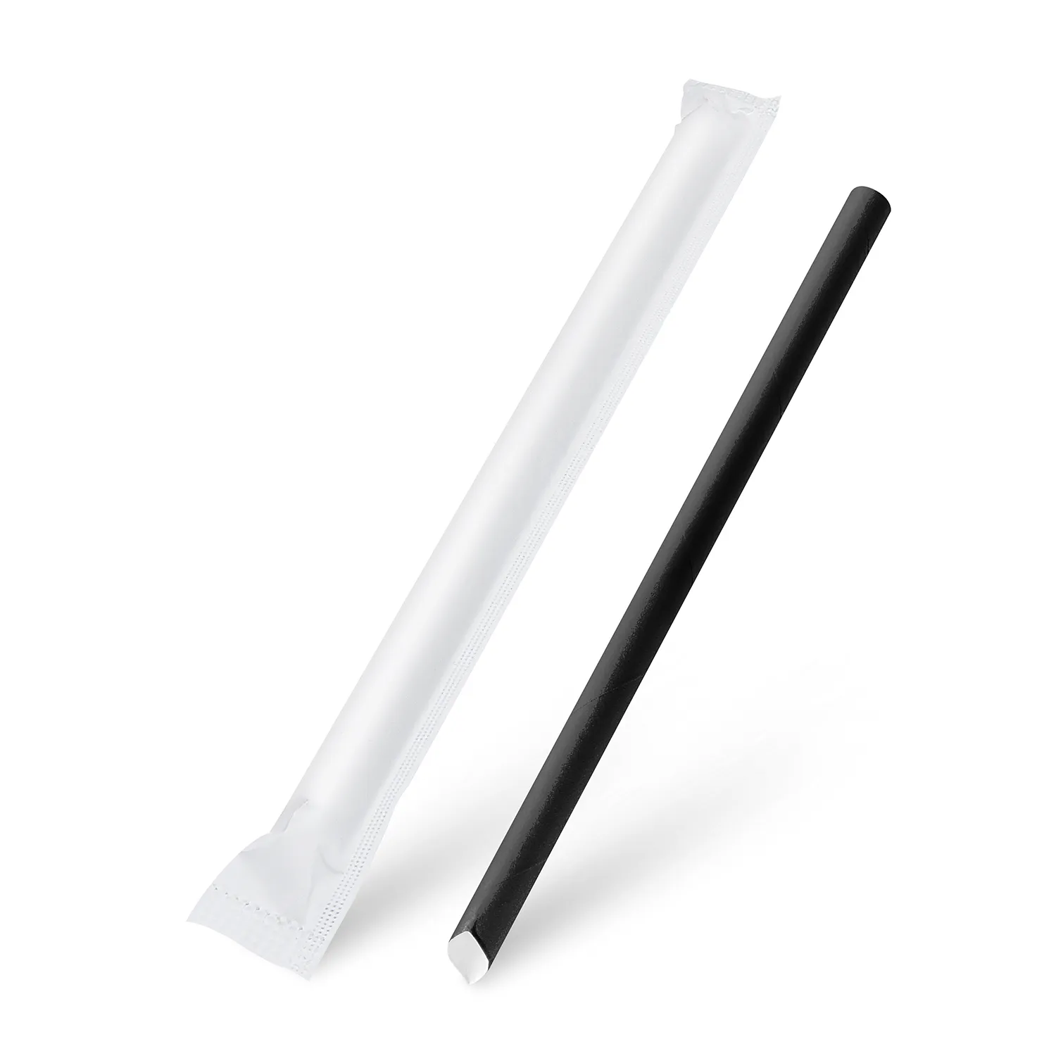 Slamky Bubble Tea, papierové, čierne, priemer 12 mm x 21cm, jednotlivo balené (100 ks)
