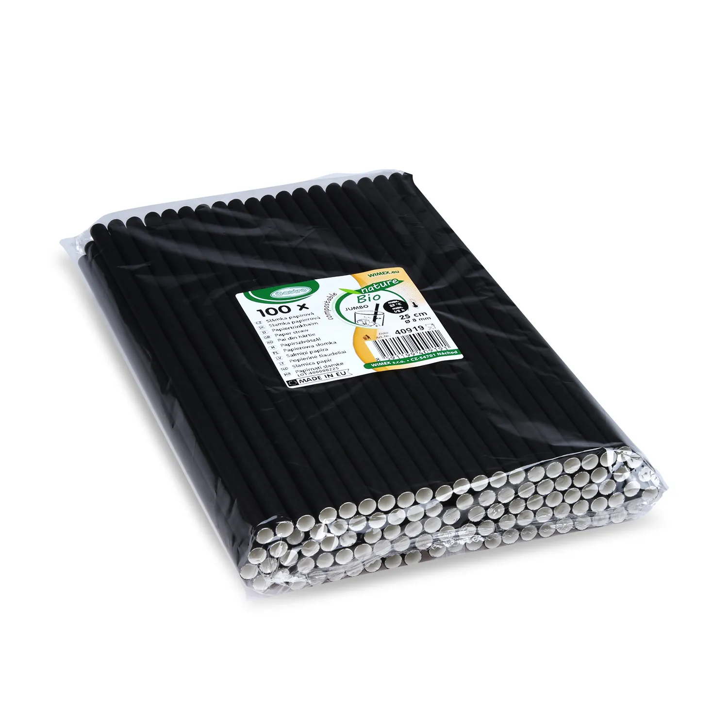 Slamky Jumbo, papierové, čierne, priemer 8 mm x 25 cm (100 ks)