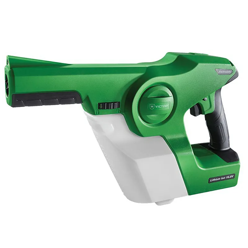 Bezšnúrový elektrostatický ručný postrekovač. Napájaný lítiovou batériou s výdržou 4 hod. Veľkosť čiastočiek rozprašovaného roztoku je nastaviteľná od 40 do 110 mikrónov. Dostrek cca. 1 m, 1 l nádrž.