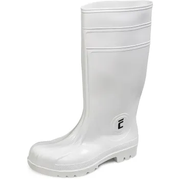 Antistatické vysoké bezpečnostné čižmy z PVC a nitrilu s oceľovou bezpečnostnou špicou, odolné voči pôsobeniu rastlinných a živočíšnych tukov s podrážkou s hlbokým dezénom. Flexibilné až do teploty -20°C. Norma: EN ISO 20345:2011 S4