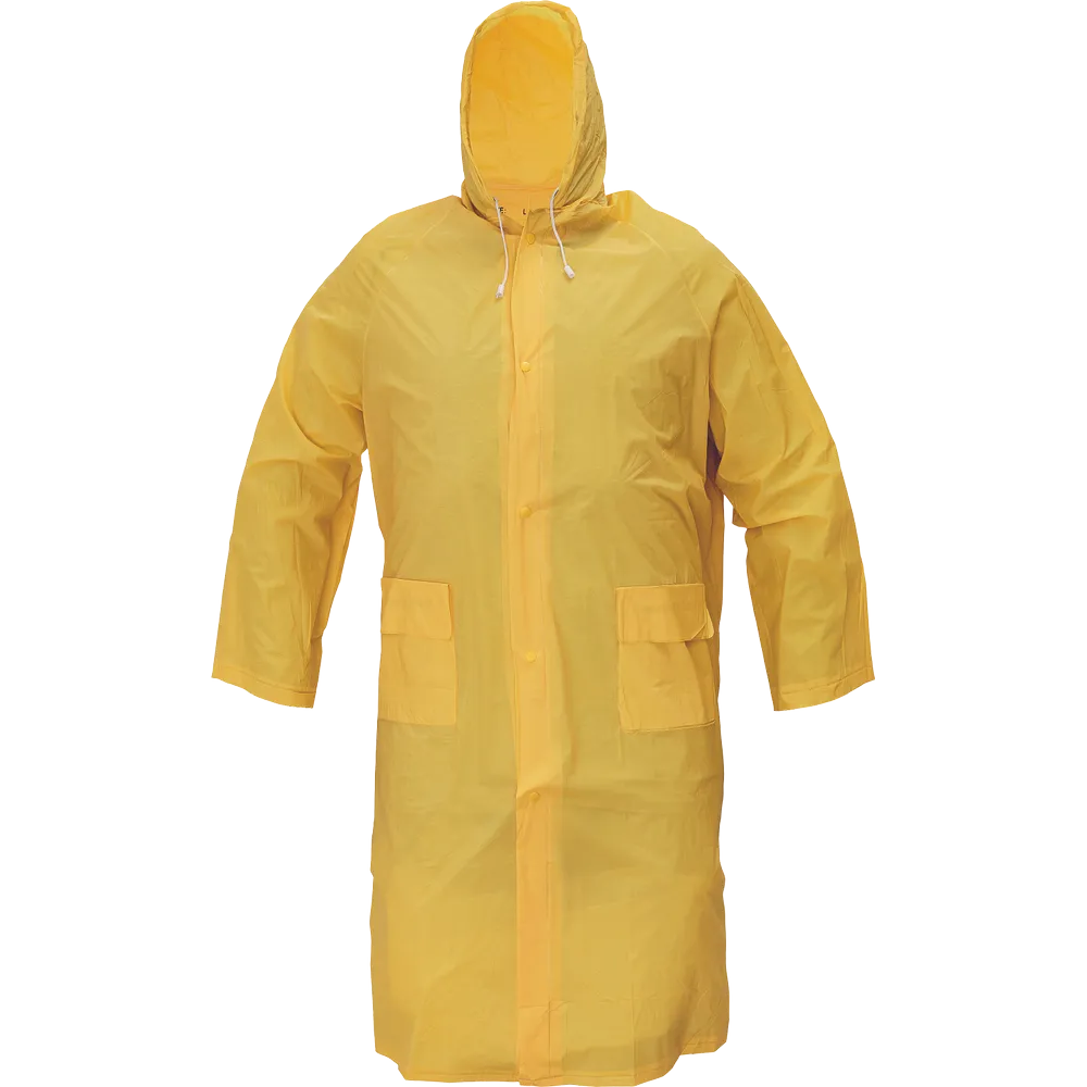 • vodeodolný ochranný plášť s kapucňou • odľahčený materiál z mäkčeného PVC bez textilnej mriežky • predĺžená dĺžka zhruba pod kolená • všetky spojovacie švy sú zatavené • dve predné vrecká kryté légami chrániacimi voči prieniku vody • spodnú časť rukávov možno regulovať cvokom • ventilácia na chrbte a v podpazušíMateriál: 100 % PVC, 90 g/m²