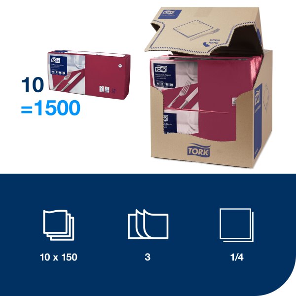 477411 Tork Obrúsky 3 vrstvové 33 x 33 cm bordové 150 ks
