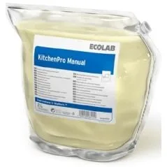 ECOLAB KitchenPro Manual - prostriedok na ručné umývanie riadu (2l): Umývací prostriedok na ručné umývanie riadu. • Ultra koncentrovaný umývací prípravok • Účinne odstraňuje všetky typy znečistenia jedlom a zaschnuté zvyšky • Prípravok nezanecháva škvrny • Univerzálne použitie, na každodenné čistenie hrncov a panvíc, porcelánu, príborov, kuchynského riadu, skla a všetkých umývateľných povrchov