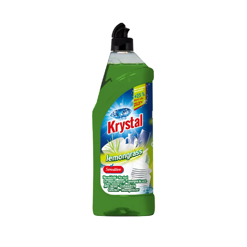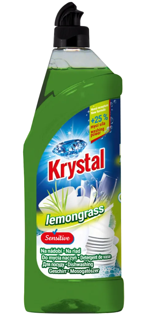 Saponát na riad s veľmi príjemnou vôňou citrónovej trávy. Má veľmi dobré čistiace účinky aj na nereze a sklenenom riade. Vyznačuje sa vysokou penivosťou a čistiacou schopnosťou. Obsahuje aktívne látky na ochranu pokožky pri umývaní. Prípravok Krystal Lemongrass dosiahol vynikajúce výsledky v tanierových testoch. Aplikujte 1PL do čistiaceho roztoku alebo po kvapkách priamo na špongiu
