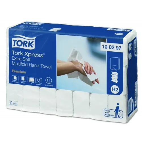 Doprajte svojim hosťom výnimočné sušenie rúk a pohodlie s veľkými a extra jemnými Tork Xpress® papierovými utierkami Multifold Premium, ktoré sú šetrné k rukám s pocitom vysokej kvality. Utierky sú vhodné do Tork Xpress® zásobníka na papierové utierky Multifold v stredne frekventovaných toaletách a umyvárňach. Možno ho použiť do malých priestorov, pričom vašim hosťom poskytuje pohodlie aj hygienu.