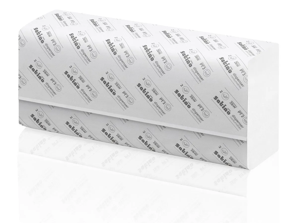 Skladané papierové utierky SATINO HiLine PT2, 2-vrst., ZZ-sklad, biele (15 x 200 ks/krt)