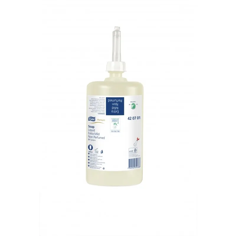 Doprajte citlivej pokožke extra starostlivosť s Tork extra jemným tekutým mydlom. Vďaka jemným prísadám a receptúre bez vôní a farbív je toto mydlo veľmi šetrné k pokožke. Certifikované Nadáciou Európskeho centra pre výskum alergií (ECARF) ako vhodné pre alergikov. Vhodné pre Tork zásobník na tekuté mydlo a mydlo v spreji, ktorý sa ľahko používa a poskytuje správnu hygienu rúk všetkým, ktorí ho použijú
