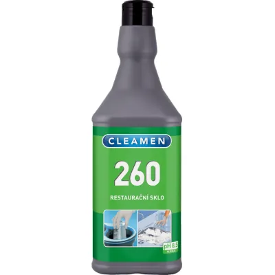 Koncentrovaný prostriedok, určený na riedenie, pre umývanie pivného a reštauračného skla. Vhodný i do umývačiek. Po umytí pivných pohárov prípravkom CLEAMEN 260 reštauračné sklo zostáva na pive dlhšie pena. Obrovskou výhodou je neutrálne pH, ktoré zaisťuje dermálnu toleranciu pri ručnej práci v roztoku. Naviac vďaka receptúre, ktorá neobsahuje agresívne odmasťovadlá, nepoškodzuje sklo pri dlhodobom strojnom umývaní. Vhodný i pre umývanie akýchkoľvek pevných plôch oplachovou metódou. Odporúčame na umývanie krištáľových lámp a lustrov. Prípravok nalejte v odporúčanom pomere do vody, v ktorej umývate reštauračné sklo alebo v pomernom množstve dávkujte priamo do umývačiek alebo na ich dávkovacie zariadenia. Po umytí opláchnite prúdom čistej vody.
