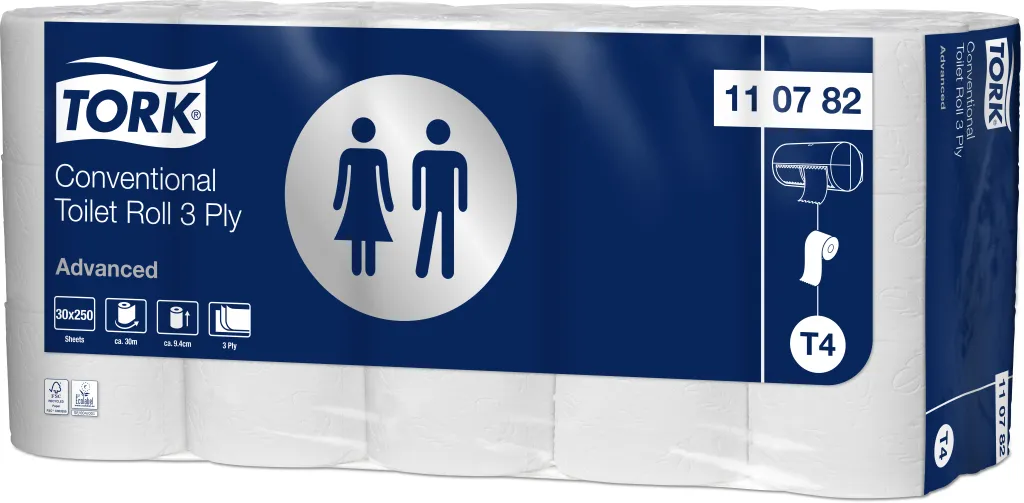 110782 Tork toaletný papier v konvenčnom kotúči Advanced, T4, 3-vrst., biely, 250 útržkov (30 ks/krt)