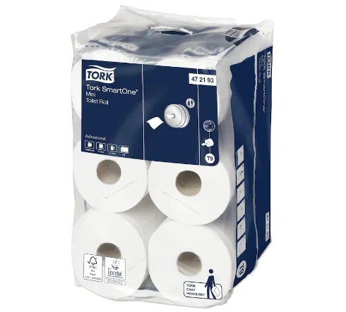 Systém Tork SmartOne mini toaletného papiera v kotúči vydáva jeden hygienický list papiera naraz, čím pomáha znižovať spotrebu až o 40 % v porovnaní s tradičnými automatickými kotúčmi Jumbo, čo znamená viac návštev na jeden kotúč. Tork SmartOne Mini sú vysokokapacitné kotúče, ktoré sú vhodné pre náročné toalety a umyvárne od nízkej, strednej až po vysokú návštevnosť v závislosti od toho, ktorý Tork SmartOne Mini zásobník si vyberiete.