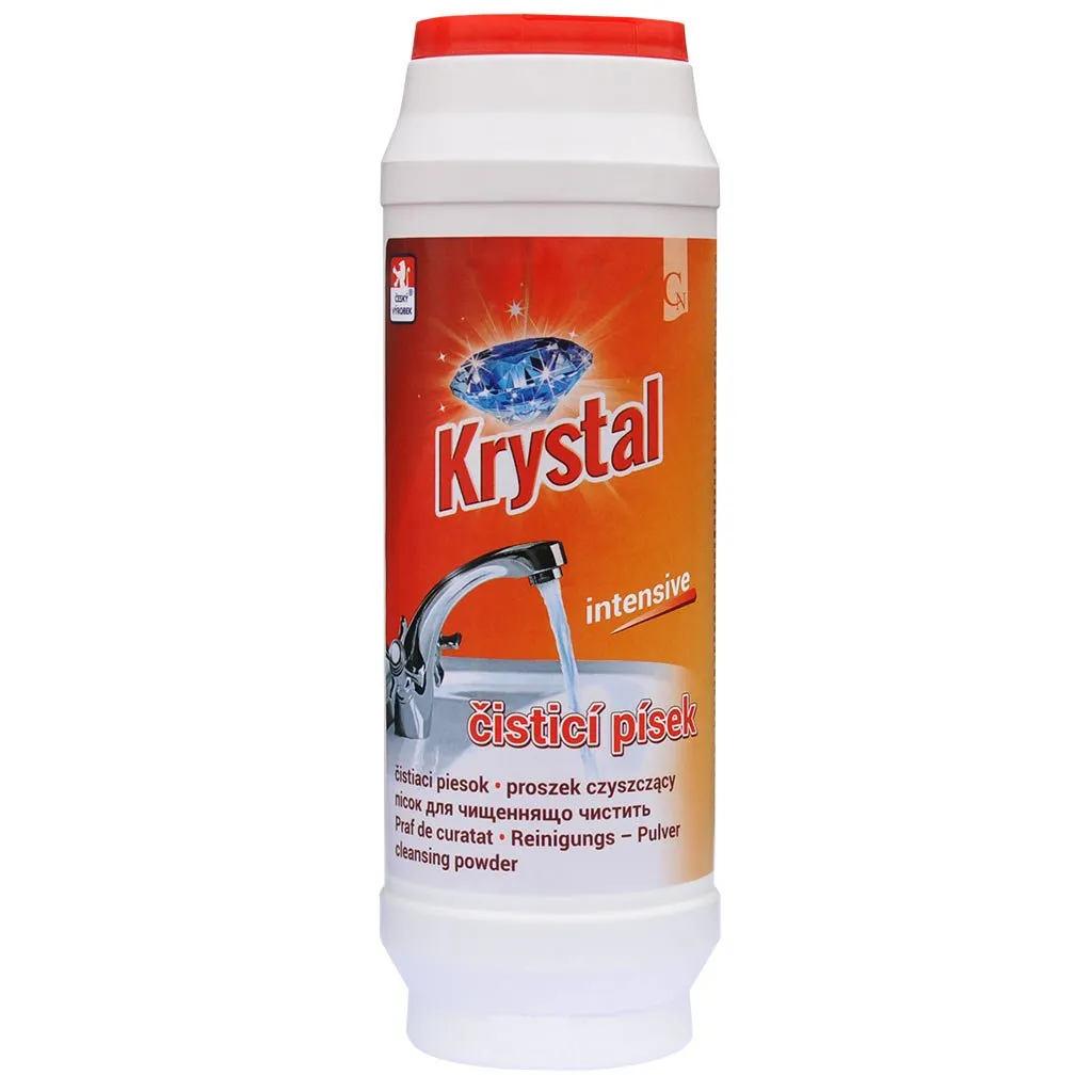 Prípravok je určený na čistenie kuchynských drezov, riadu, kúpeľňových ván, umývadiel a obkladov. Krystal je svojou receptúrou postavený na úroveň tých najjemnejších práškových čističov. Nezanecháva škvrny a vďaka obsahu dezinfekčnej prísady potlačuje na vyčistenom povrchu výskyt nebezpečných baktérií.