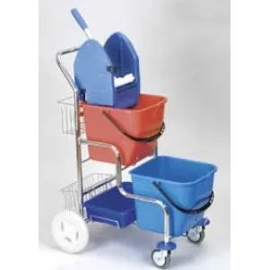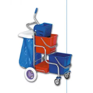 Kvalitný oceľový pochromovaný vozík českej výroby. Súčasťou je konštrukcia s koliečkami, kvalitné vedrá 2ks 17L, vertikálny lis "P", držiak a podpera vreca, plastová vanićka 1ks. Vozík je schopný transportu po schodoch. Doplnkové príslušenstvo (nezahrnuté v cene): veko na držiak vreca