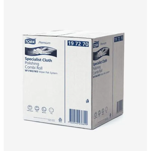 Tork Polishing nevláknitá utierka je ideálna na leštenie citlivých povrchov. Mäkká a pružná utierka uvoľňuje leštiace látky, čím dodá profesionálny lesk bez zanechávania stôp. Možno ju použiť v Tork stojanových zásobníkoch na podlahu či na stenu, ktoré sú vyvinuté na bezpečné, účinné a spoľahlivé použitie, prípadne v Tork maxi zásobníkoch so stredovým odvíjaním alebo zásobníkoch na kombi kotúč v boxe, ktoré sú vyvinuté na jednoduchšie dávkovanie jednou rukou.