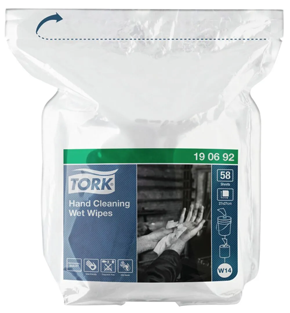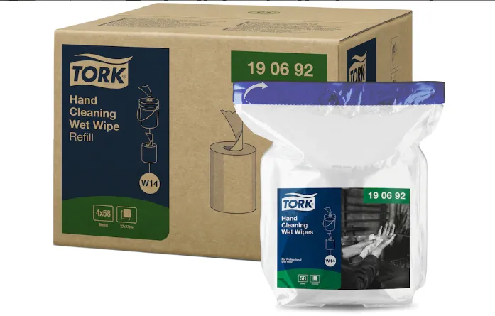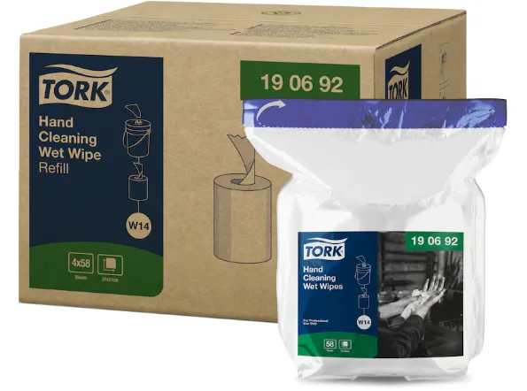 Tork vlhčené utierky na ruky sú pohodlné a účinné na čistenie rúk, keď nemáte k dispozícii vodu. Vďaka tomuto produktu je dopĺňanie jednoduché a efektívne.