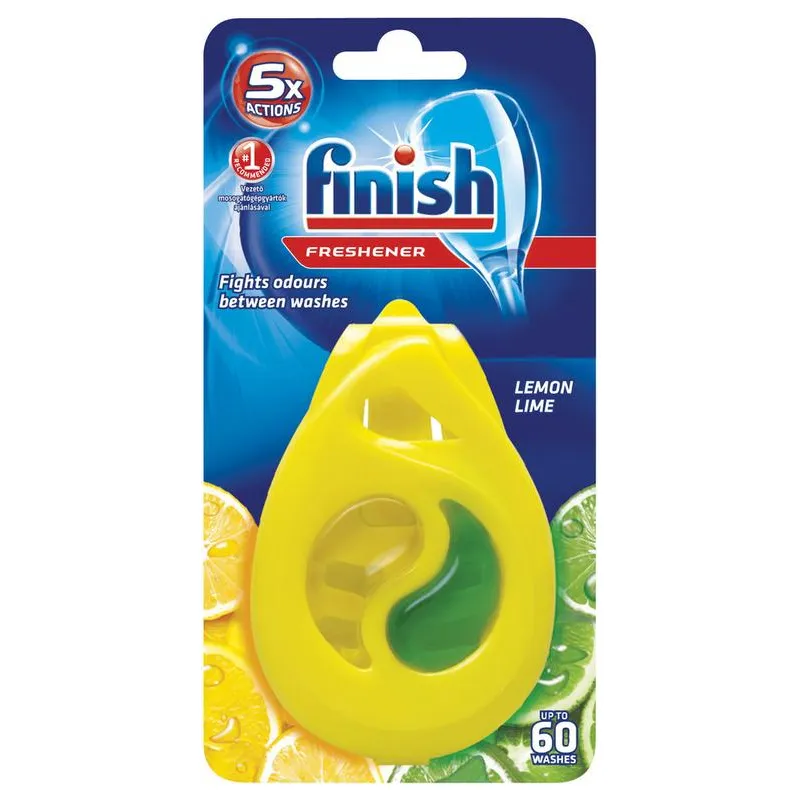 FINISH Citron & Limeta, osviežovač do umývačky riadu. Dodajte vašej umývačke unikátny osviežovač s jedinečnou kombináciou vôní sviežeho citróna a limetky. Nasajte príjemnú arómu pri každom otvorení vašej umývačky. Povedzte stop zápachom a doprajte si luxus v podobe osviežujúcej citrónovo-limetkovej vône. Prepadnite tomuto kúzlu aj vy.