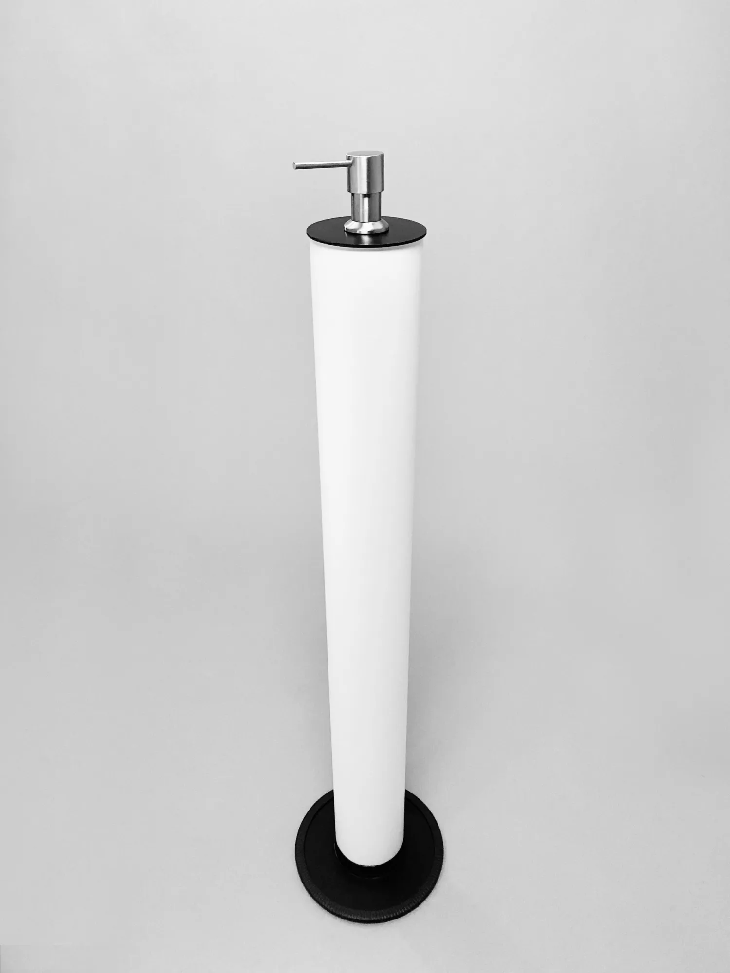 Univerzálny dávkovač na dezinfekciu, prostriedok na jar, mydlo a iné tekuté prostriedky s možnosťou zabudovania do pracovnej dosky, či iného kusu nábytku. Nádobka z plastu. Pumpa z chrómu.