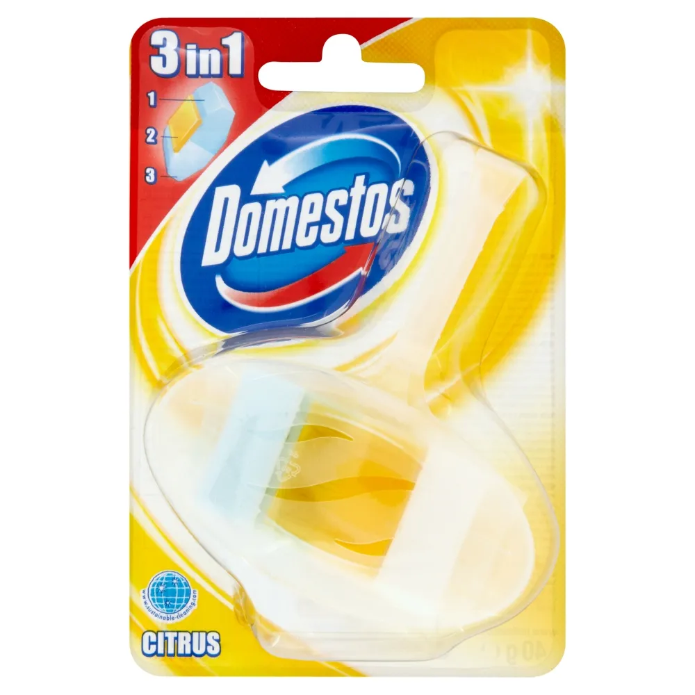 Domestos WC blok udržuje vašu toaletu sviežu a hygienicky čistú. Príjemná citrusová vôňa.