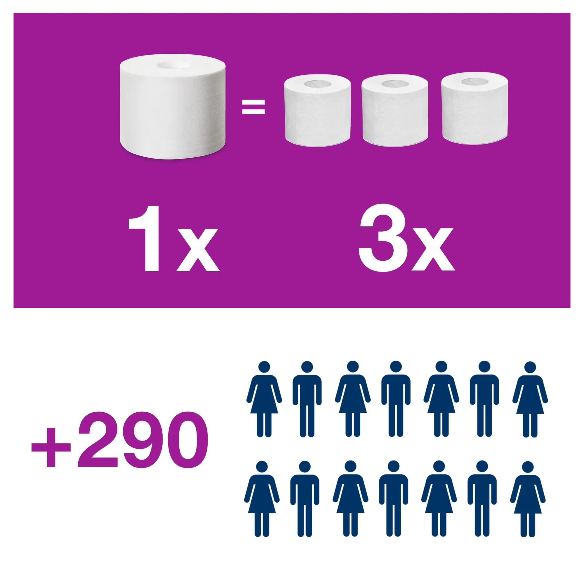 - Tork OptiServe bezdutinkové kotúče majú 3x viac toaletného papiera, sú bez dutinky a krycej vrstvy papiera, vďaka čomu predstavujú menej odpadu v porovnaní s bežným toaletným papierom