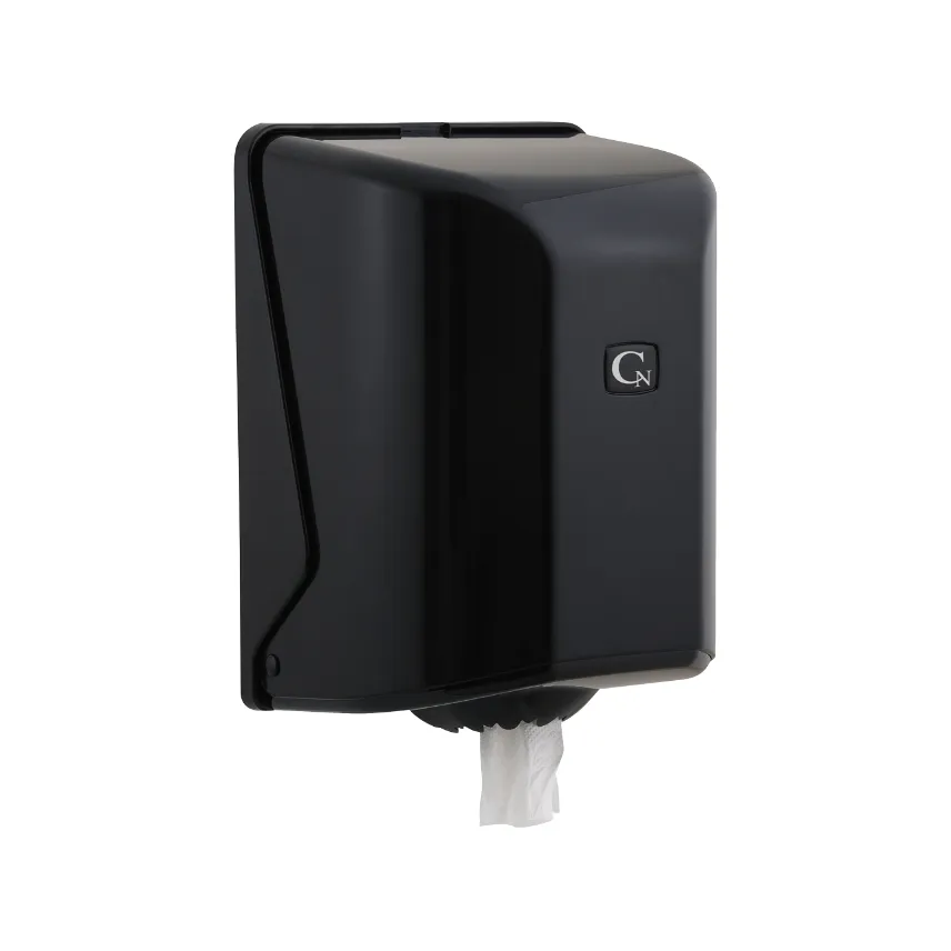 Nástenný zásobník na papierové utierky v roli so stredovým odvíjaním s priemerom 20x20 cm. Je praktický do prevádzok, kde je zvýšený ruch a pohyb ľudí a tým pádom aj väčšia spotreba utierok. Vhodný je taktiež do kuchýň a dielní. Vyrobený z čierneho ABS plastu. Možnosť montáže iba na šróby. Rozmery: 21 x 22 x 31 cm (h x š x v)