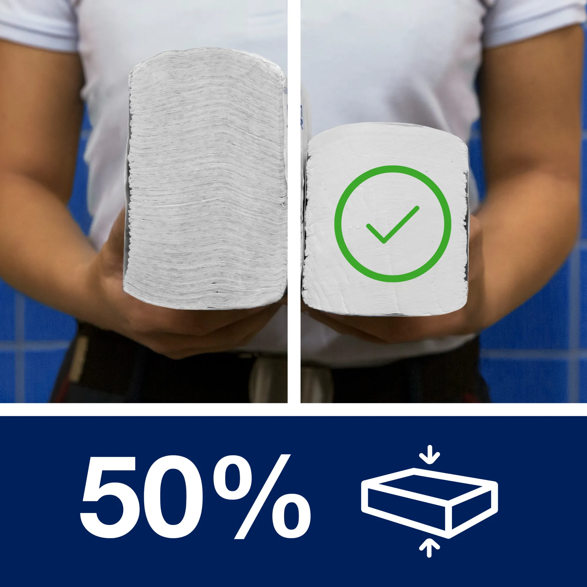 - Stlačené balenie znamená o 250 % viac utierok na ruky, čím predídete ich nečakanému minutiu (v porovnaní s náhradnými náplňami Tork Universal a Tork Xpress® zásobníkmi na papierové utierky Multifold), systém navyšuje kapacitu až o 40 %.