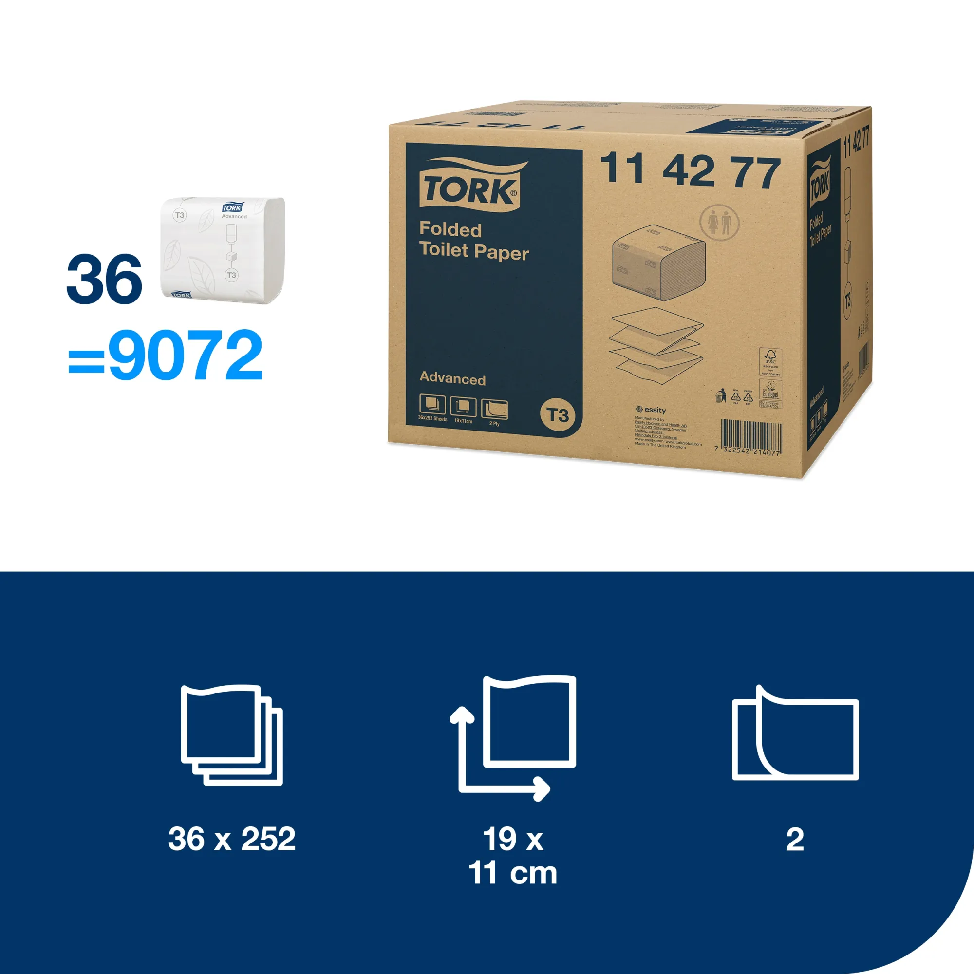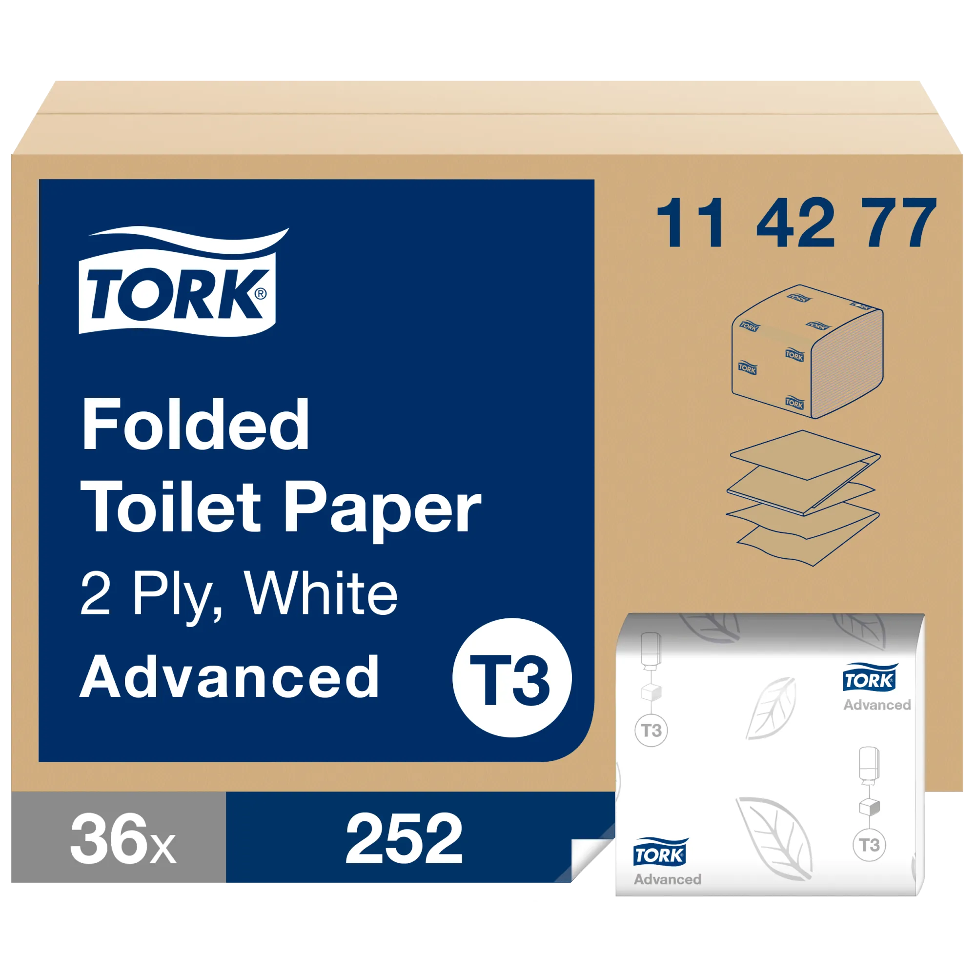 114277 Tork Folded skladaný toaletný papier Advanced, T3, 2-vrst., biely (36 x 252 ks/krt)