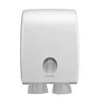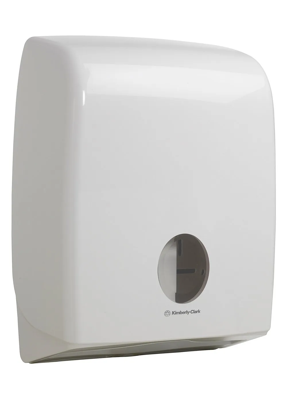 Vytvorte hygienický a koordinovaný zážitok z toaliet s radom dávkovačov Aquarius™, navrhnutých tak, aby fungovali v dokonalej harmónii s dôveryhodnými a známymi značkami Kleenex® a Scott®. Tieto dávkovače na toalety sú navrhnuté tak, aby podporovali hygienické štandardy toaliet a poskytovali konzistentné riešenie toaliet vhodné pre hygienické potreby vášho pracoviska. Tento dávkovač skladaného toaletného papiera Aquarius™ spája inováciu a štýl s výnimočným výkonom. Vysokokapacitný dávkovač dvojnásobnej veľkosti vám umožní zmestiť dvakrát viac skladaného toaletného papiera ako dávkovač štandardnej veľkosti, vďaka čomu je ideálny pre rušné toalety. Tento dávkovač toaletného papiera má elegantný a hladký zaoblený dizajn bez zachytávania nečistôt. Plne uzavretý dávkovač toaletného papiera na jeden list a jeho účinné dávkovanie jedného listu zaručuje, že sa dotknete iba produktu, ktorý používate, čo pomáha znižovať krížovú kontamináciu. Dávkovač toaletných vreckoviek s jedným listom poskytuje znovu naplniteľné, spoľahlivé a kedykoľvek doplňovacie riešenie na údržbu toaliet. Dopĺňanie dávkovača je jednoduché a bezproblémová údržba znižuje náklady. Tento dávkovač toaletných vreckoviek Aquarius™ má skrytý zámok na doplnenie a okienko, ktoré vám pomôže predvídať, že vreckovky dôjdu.