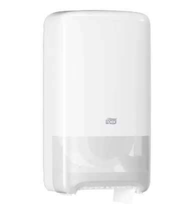 Tork Mid-size Twin zásobník na toaletný papier v kotúči v dizajne Elevation je ideálny pre stredne až vysoko frekventované toalety a umyvárne s vysokým dôrazom na spokojnosť zákazníka. Zabezpečuje vysokú účinnosť tým, že do neho možno vložiť šesťkrát viac papiera, než sa nachádza na dvoch bežných kotúčoch, preto je toaletný papier vždy k dispozícii pre hostí. Zásobníky Elevation majú praktický a moderný dizajn, ktorý zanecháva v hosťoch dlhodobý dojem.
