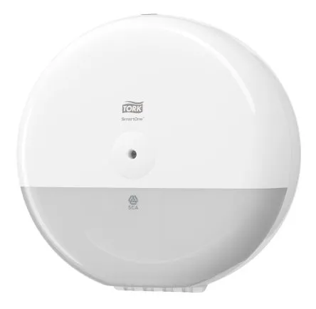 Tork SmartOne® zásobník na toaletný papier v kotúči v dizajne Elevation je moderný a efektívny systém zásobníkov vhodný pre náročné toalety a umyvárne s vysokou návštevnosťou. Dávkovanie po útržkoch pomáha znižovať spotrebu až o 40 % v porovnaní s tradičnými jumbo kotúčovými zásobníkmi, čo znamená viac návštev na jeden kotúč. Zásobníky Tork Elevation majú praktický a moderný dizajn, ktorý zanecháva v hosťoch dlhodobý dojem.