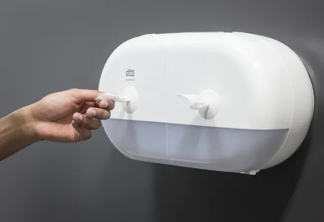 - Vďaka dvom kotúčom a dávkovaniu po útržkoch sa zníži spotreba až o 40 % v porovnaní s tradičnými zásobníkmi na jumbo toaletný papier