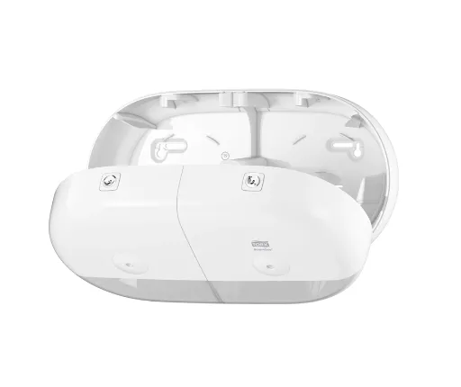 Tork SmartOne® Twin mini zásobník na toaletný papier v dizajne Elevation je moderný a efektívny systém zásobníkov vhodný pre náročné toalety a umyvárne s vysokou návštevnosťou. Tým, že sa doň zmestia dva kotúče, a dávkovaním po útržkoch, pomáha znižovať spotrebu až o 40 % v porovnaní s tradičnými jumbo kotúčovými zásobníkmi, čo znamená viac návštev na jeden kotúč. Zásobníky Tork Elevation majú praktický a moderný dizajn, ktorý zanecháva v hosťoch dlhodobý dojem.